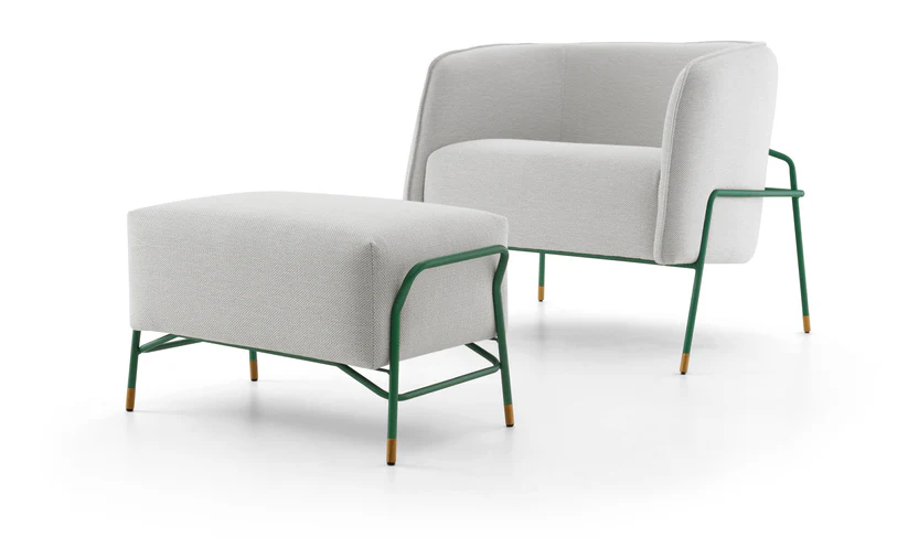 A study in softness and structure, the Bella Chair pairs modern elegance with timeless comfort. Its curved tub-like seat envelops the body in a gentle embrace, while the continuous flow of the backrest into the armrests enhances both form and function. Slender metal legs lend a refined edge, grounded by a gracefully arched support bar that adds balance and visual rhythm. Bella is where sculptural design meets everyday comfort—an effortless accent for sophisticated spaces.