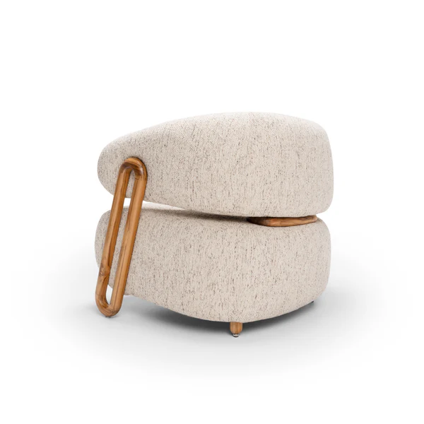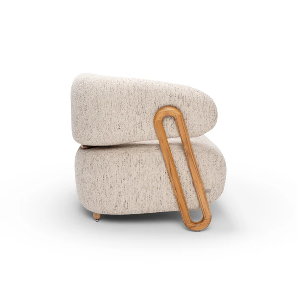 The armchair features a design that evokes the elegance and strength of ipê trees, with curved, organic lines that resemble the contours of Brazil’s tropical forests.