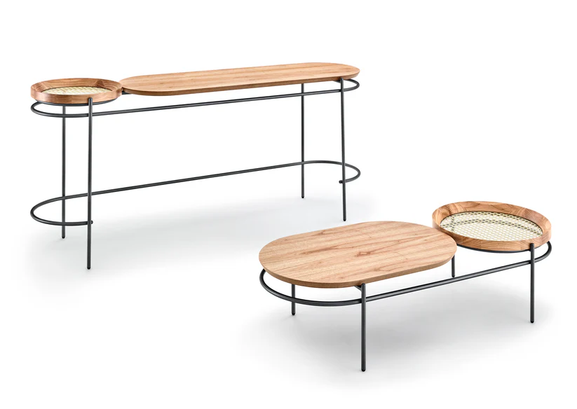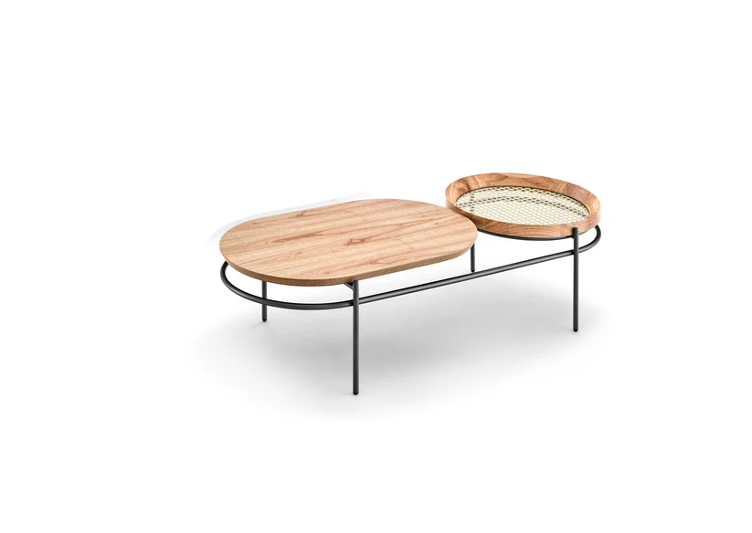 Designed by Estúdio Uultis, the Kora Coffee Table is a refined composition of contrast and balance. A sculptural metal frame supports two distinct surfaces—a solid wood top and a perforated metal tray—merging texture and form in a striking yet harmonious design. With its layered elegance and modern utility, Kora becomes a focal point in any contemporary space. Thoughtfully crafted with sustainable materials, it embodies the Uultis philosophy: design that endures, with purpose and precision.